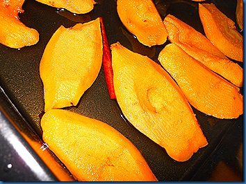 Μεταφέρουμε τα ψημένα κυδώνια με το σιρόπι τους (αφού